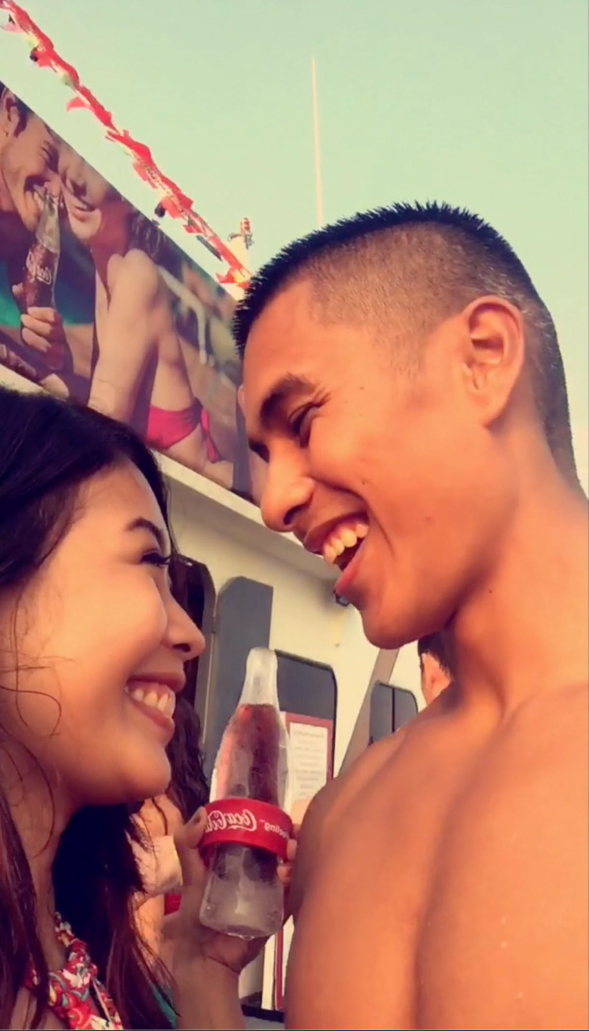The second piece of video was a collaboration with a popular teen influencer using his personal Snapchat account. This was Coca-Cola's first foray into the social media platform, which had only recently launched at the time of the campaign. Throughout the day the influencer would post snaps of how he and his girlfriend engaged in various activities in the beach while enjoying their Coca-Cola ice bottles.